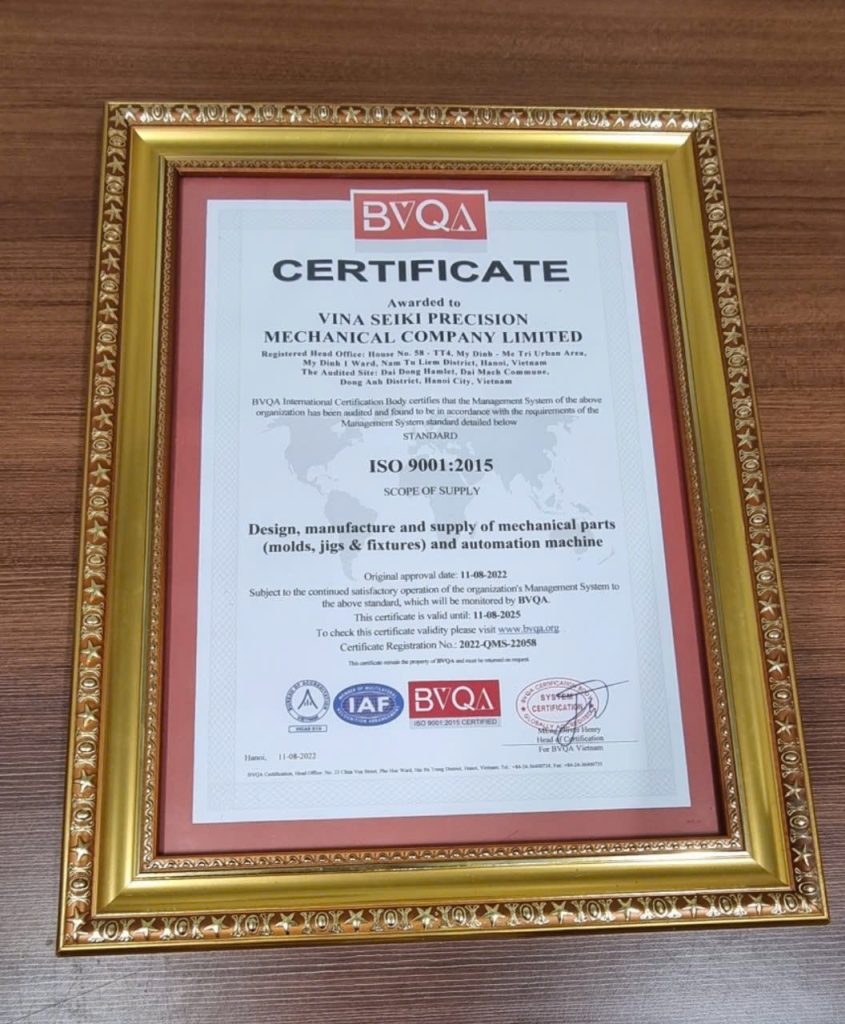 🌟 Vina Seiki Precision Mechanical – Khẳng định uy tín với chứng nhận ISO 9001:2015 🌟